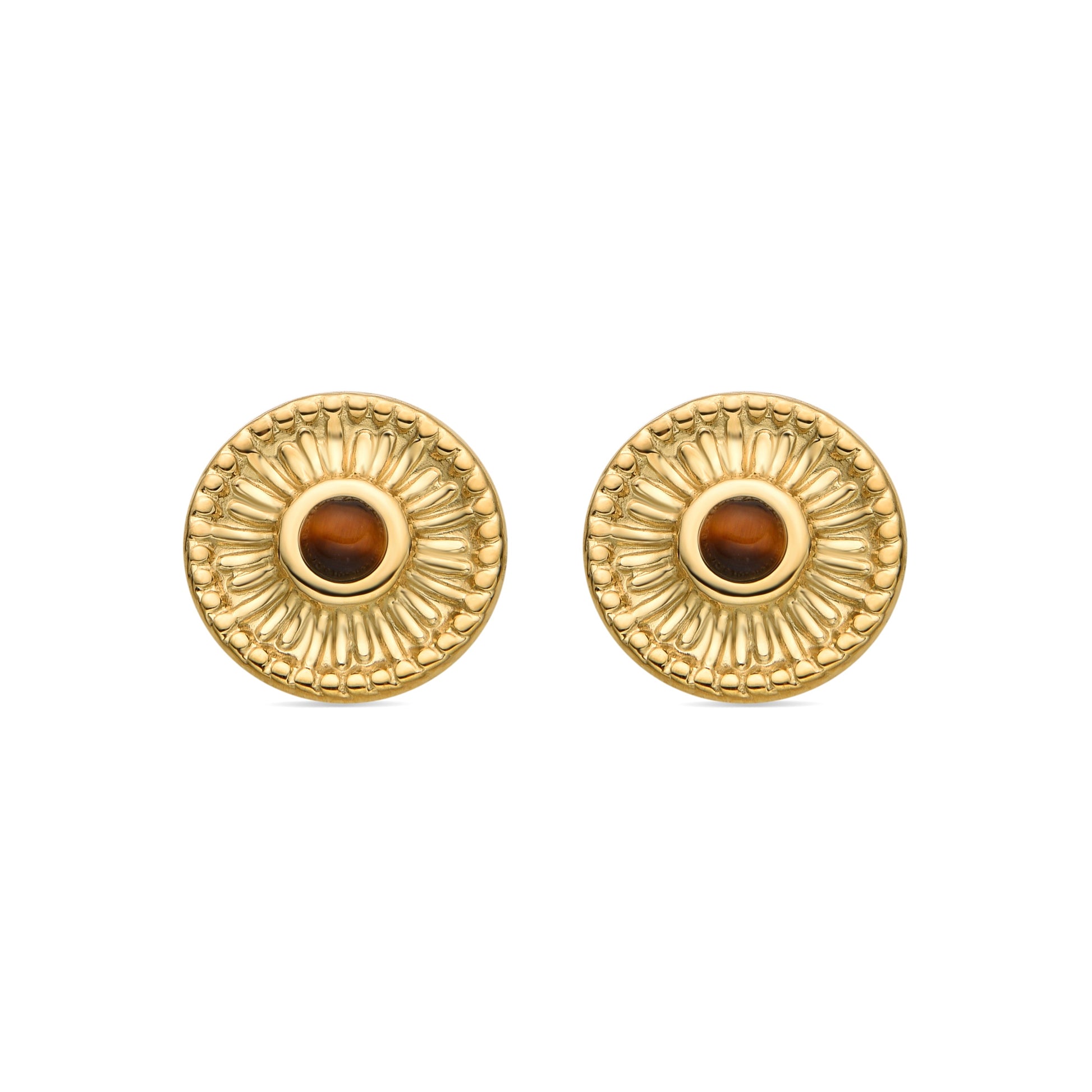 Pendientes de acero Lanyeb con Ojo de Tigre acabado oro 18k. El estilo Boho es una estética de espíritu libre que mezcla diferentes culturas y expresiones artísticas en un estilo ecléctico con énfasis en los elementos orgánicos y la naturaleza.