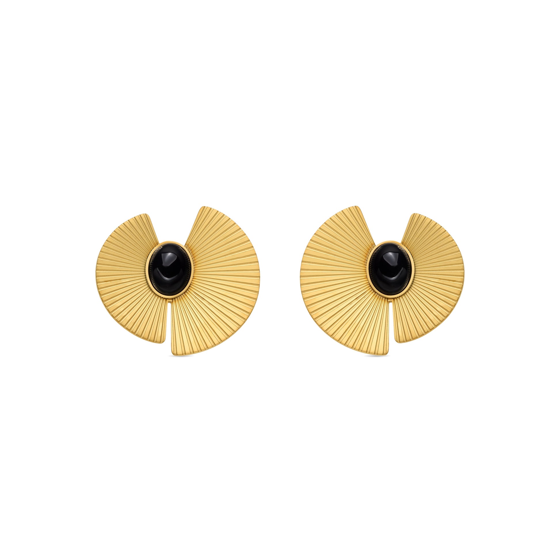 Pendientes de acero Lessa con Onix acabado oro 18k. El estilo Boho es una estética de espíritu libre que mezcla diferentes culturas y expresiones artísticas en un estilo ecléctico con énfasis en los elementos orgánicos y la naturaleza.