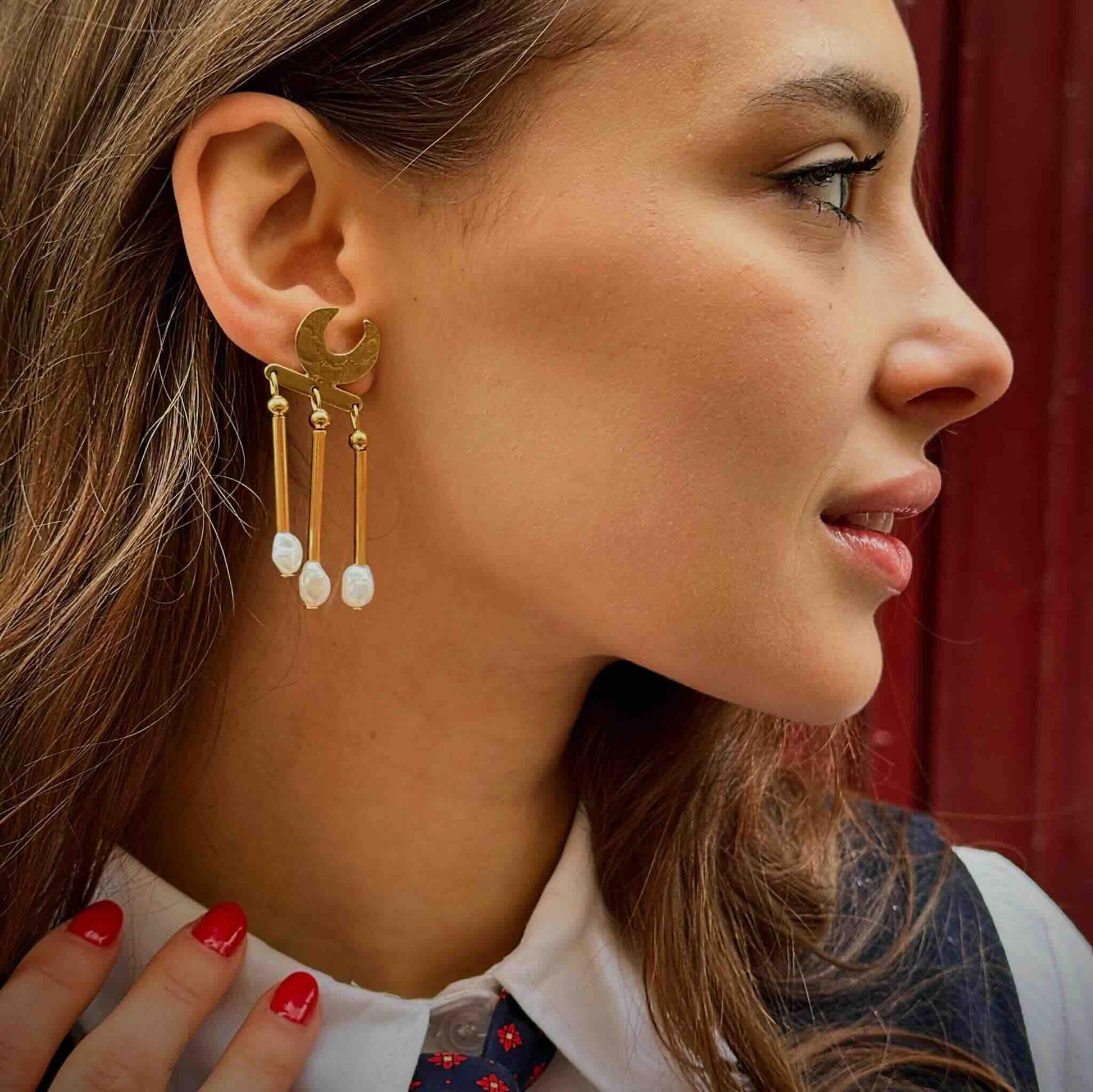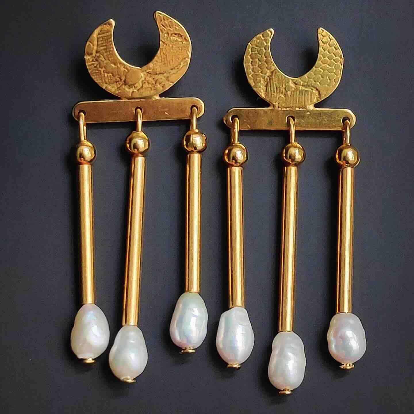 Pendientes hechos a mano con perlas de agua dulce. Inspirados en pendientes de la antigua roma.