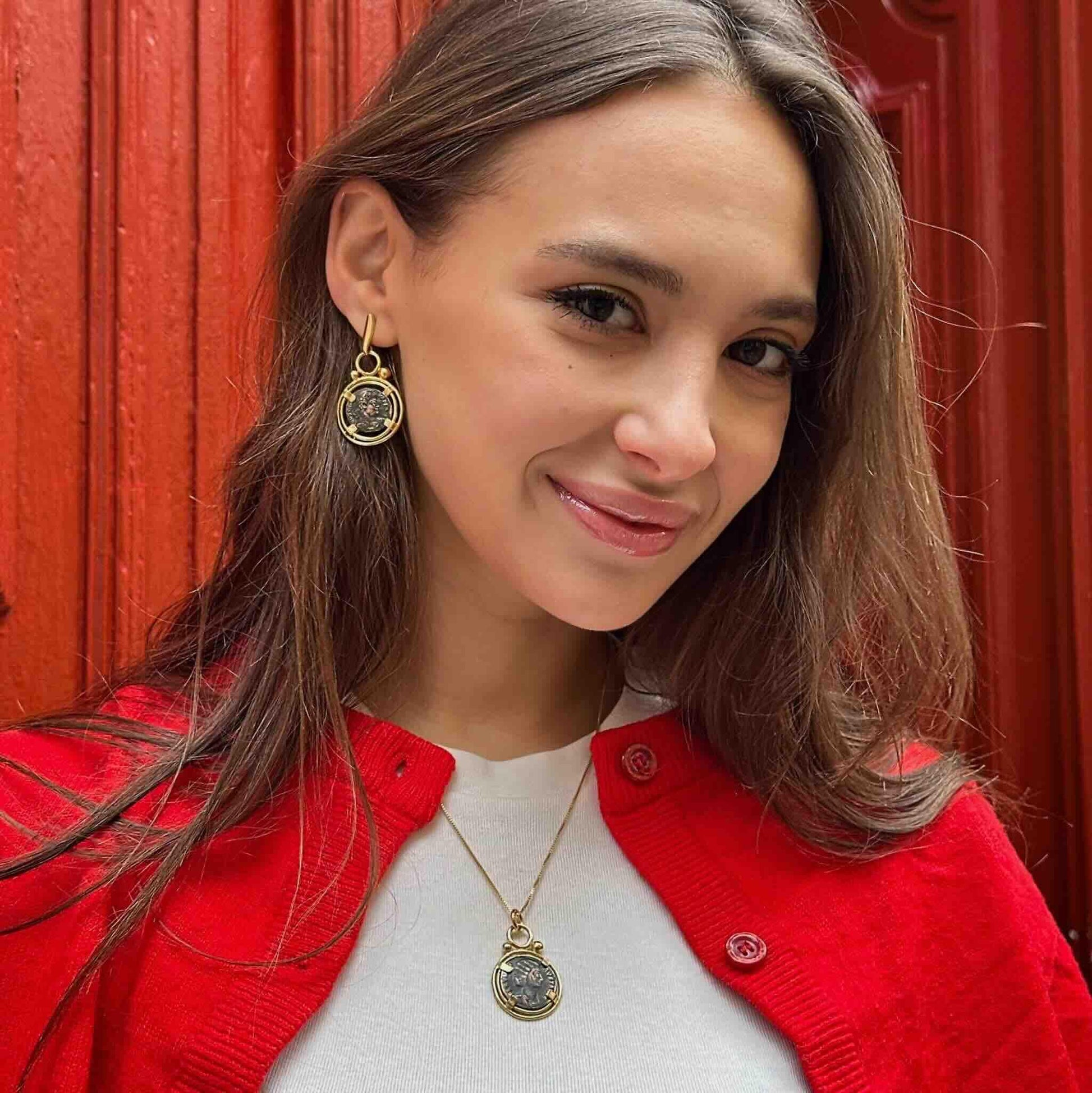 Pendientes fabricados a mano con monedas romanas auténticas. Los pendientes se entregan acompañados de un certificado de autenticidad de las monedas garantizado por un numismático profesional.