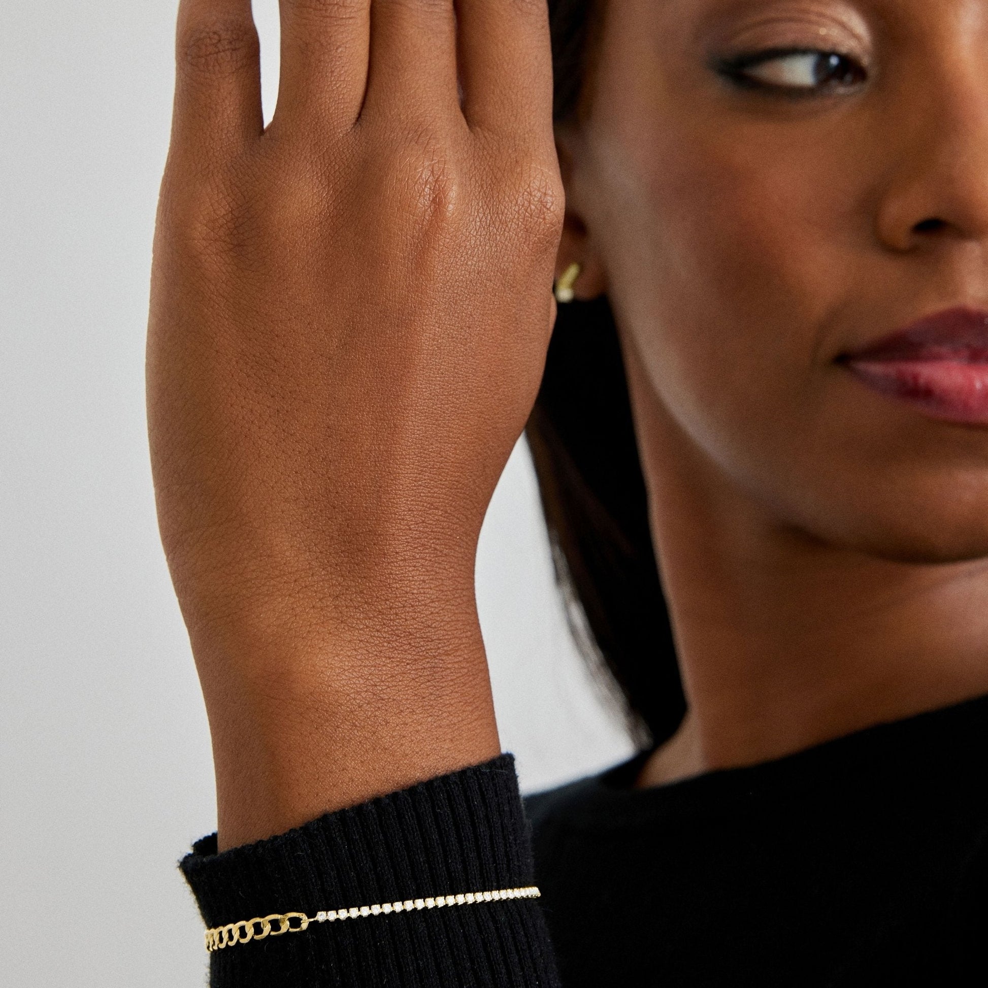 Pulsera Nirik de Circonita Brillante acabada en baño de oro amarillo de 18 quilates. África Basic encarna la sencillez refinada, piezas atemporales con líneas suaves y el brillo adicional de las circonitas. Joyas básicas sin pretensiones que son perfectas para el uso diario, pero también pueden funcionar en ocasiones especiales.