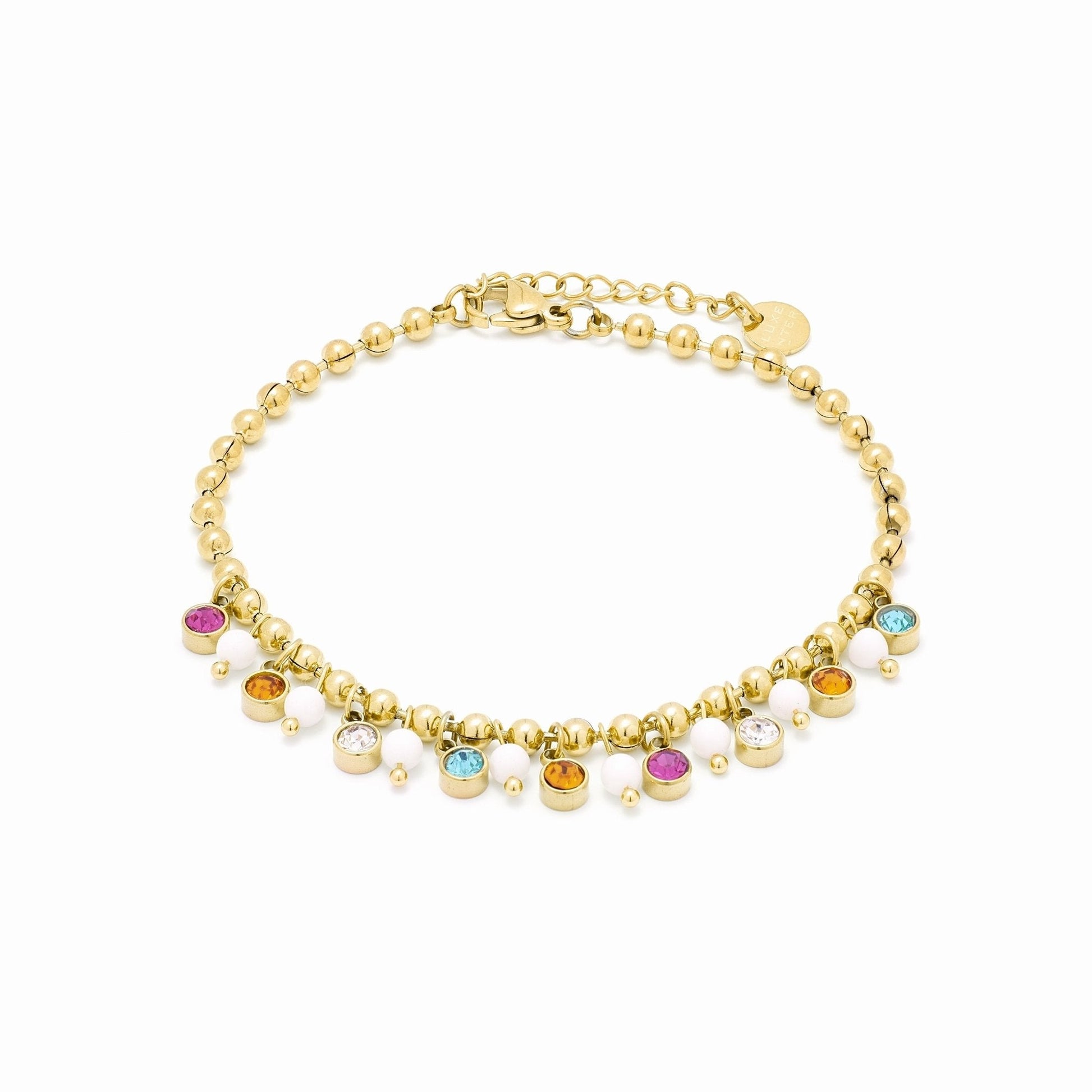 Pulsera Zasid de Circonita Multicolor acabada en oro amarillo de 18K. África moda se convierte en la línea perfecta para mujeres con personalidad, que no temen arriesgar y lucir piezas con carácter propio.