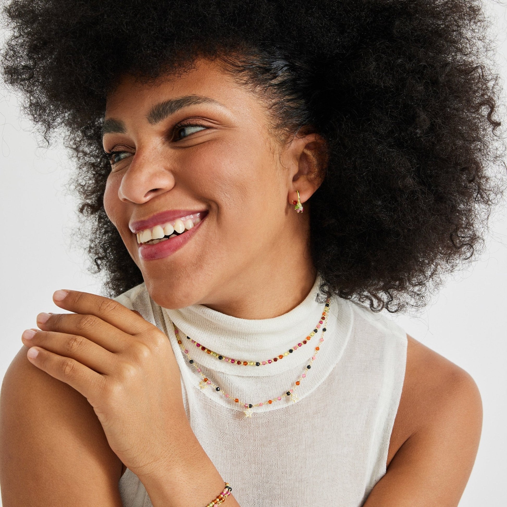 Pulsera Ryfos de Cristal Multicolor acabado oro 18k. África Moda te sumerge en un mundo de colores vibrantes, texturas exquisitas y diseños artesanales que reflejarán la esencia de tu espirítu.