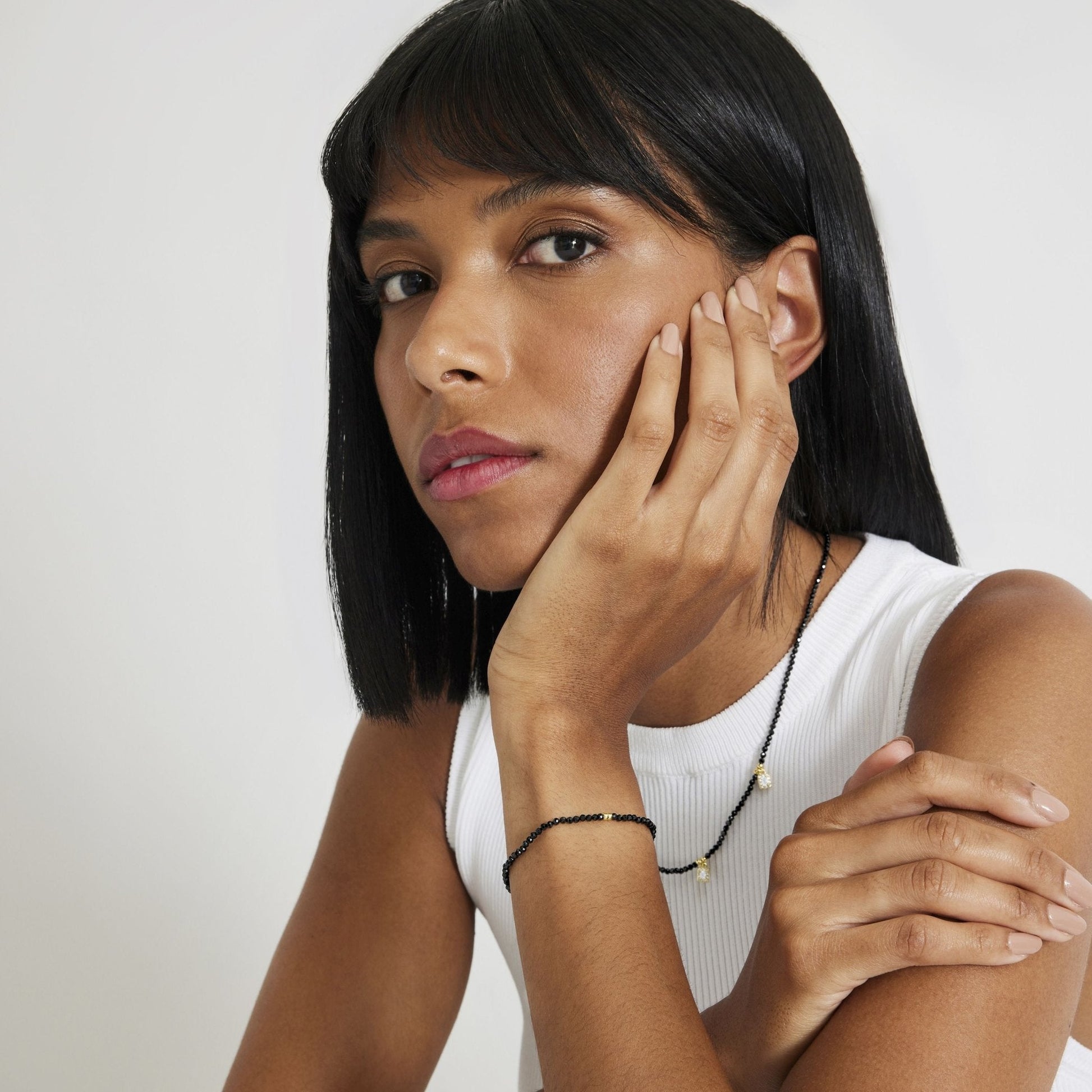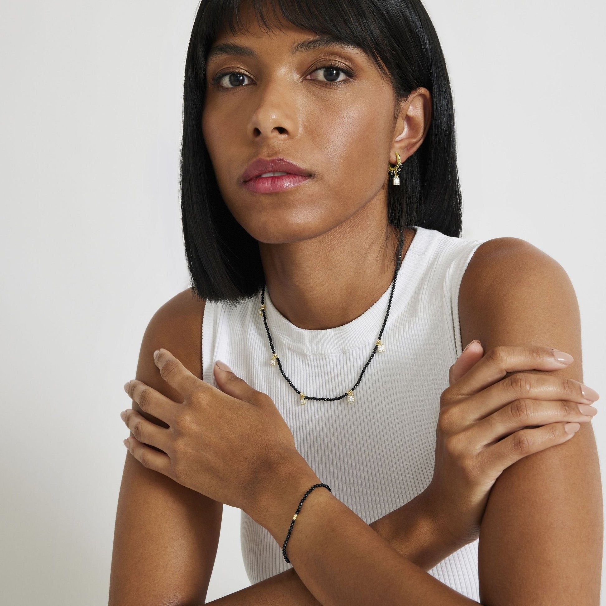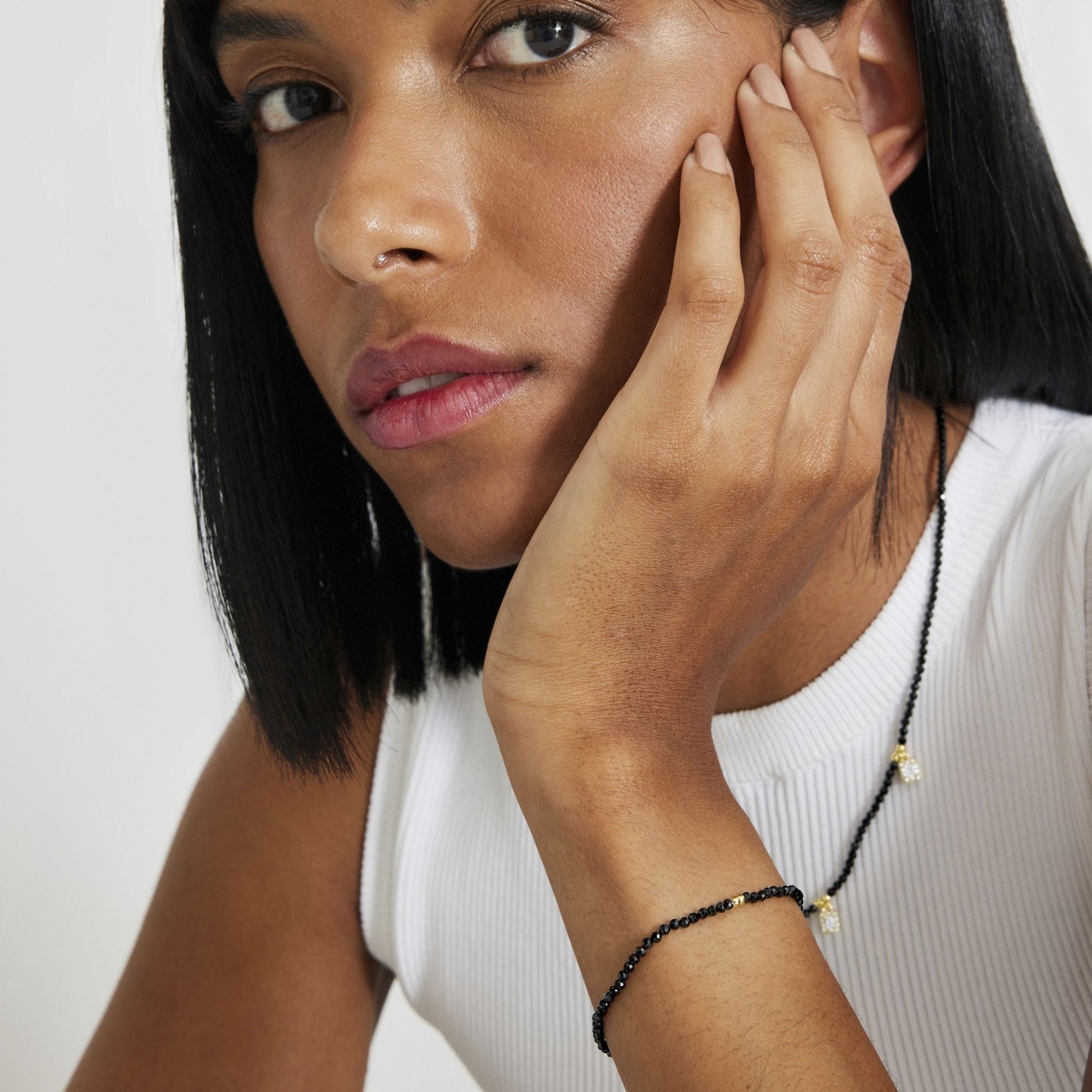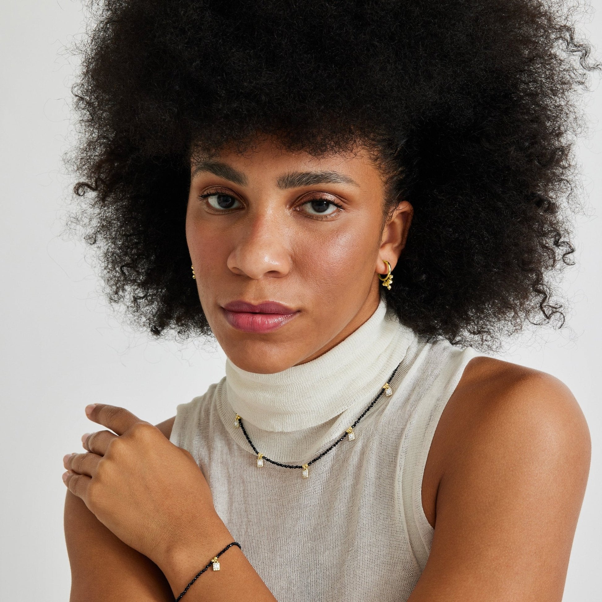 Pulsera Aska de Agata Negra acabado oro 18k. África Moda te sumerge en un mundo de colores vibrantes, texturas exquisitas y diseños artesanales que reflejarán la esencia de tu espirítu.