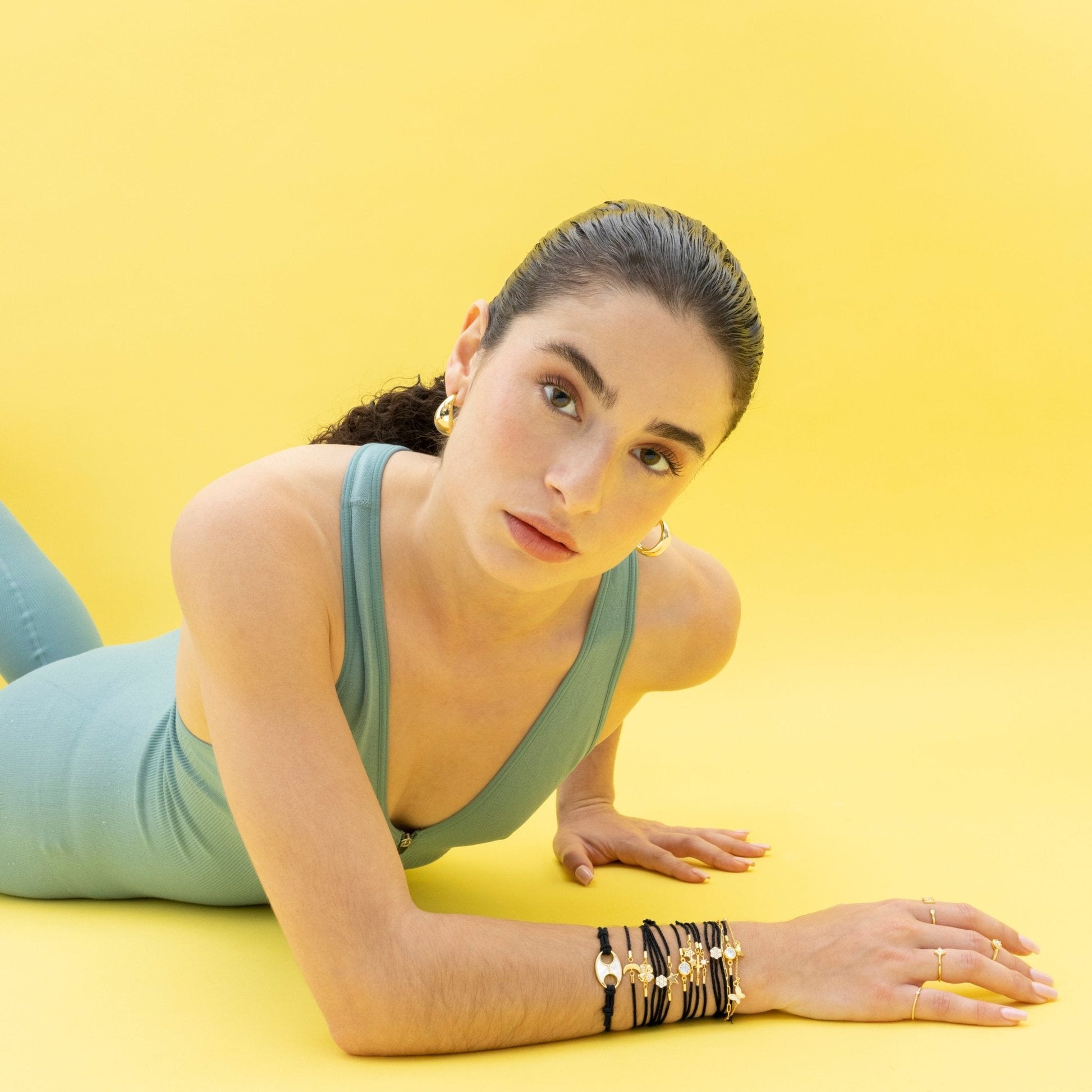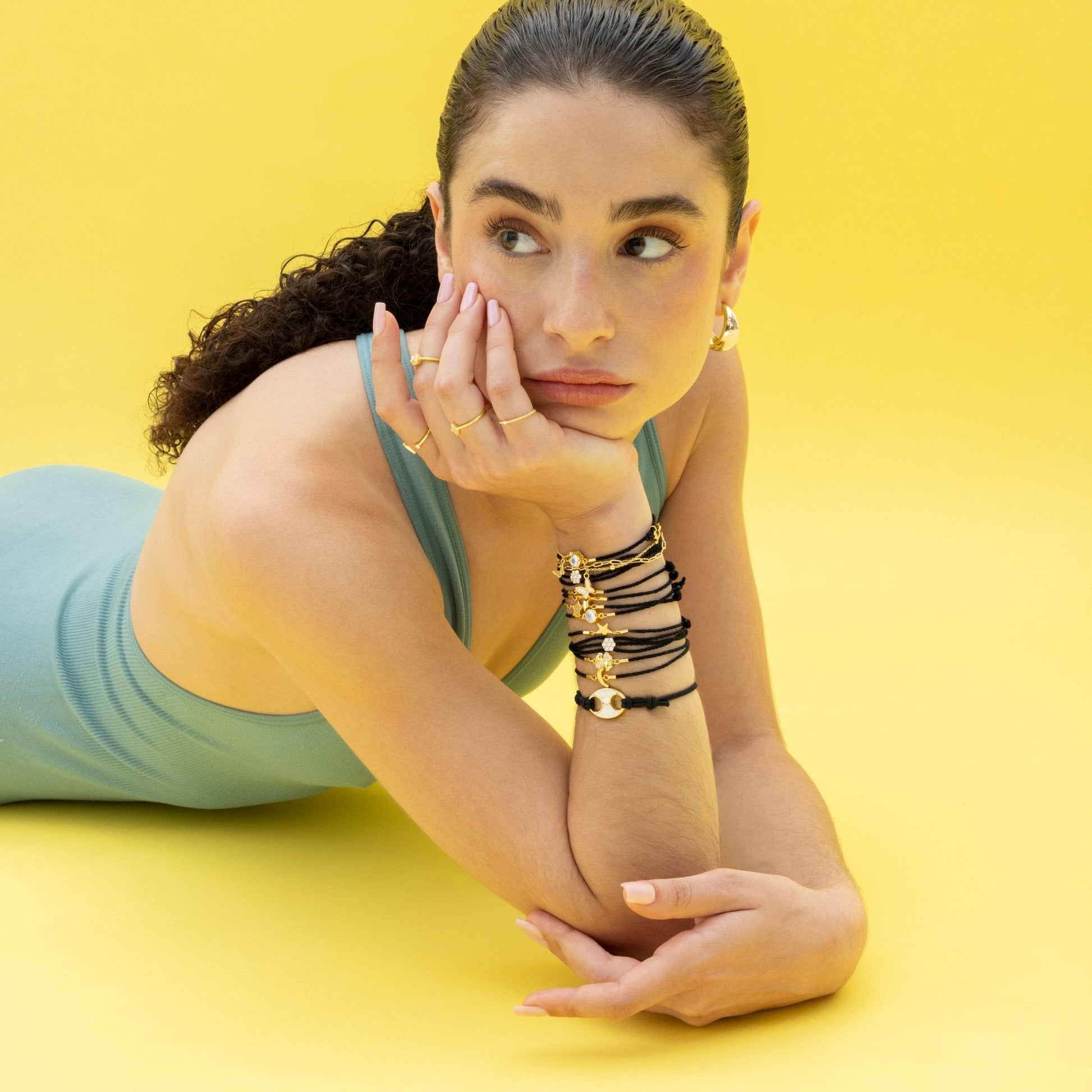 Pulsera Tiek de Circonita Brillante acabado oro amarillo de 18K. África Basic encarna la sencillez refinada, piezas atemporales con líneas suaves y el brillo adicional de las circonitas. Joyas básicas sin pretensiones que son perfectas para el uso diario, pero también pueden funcionar en ocasiones especiales.
