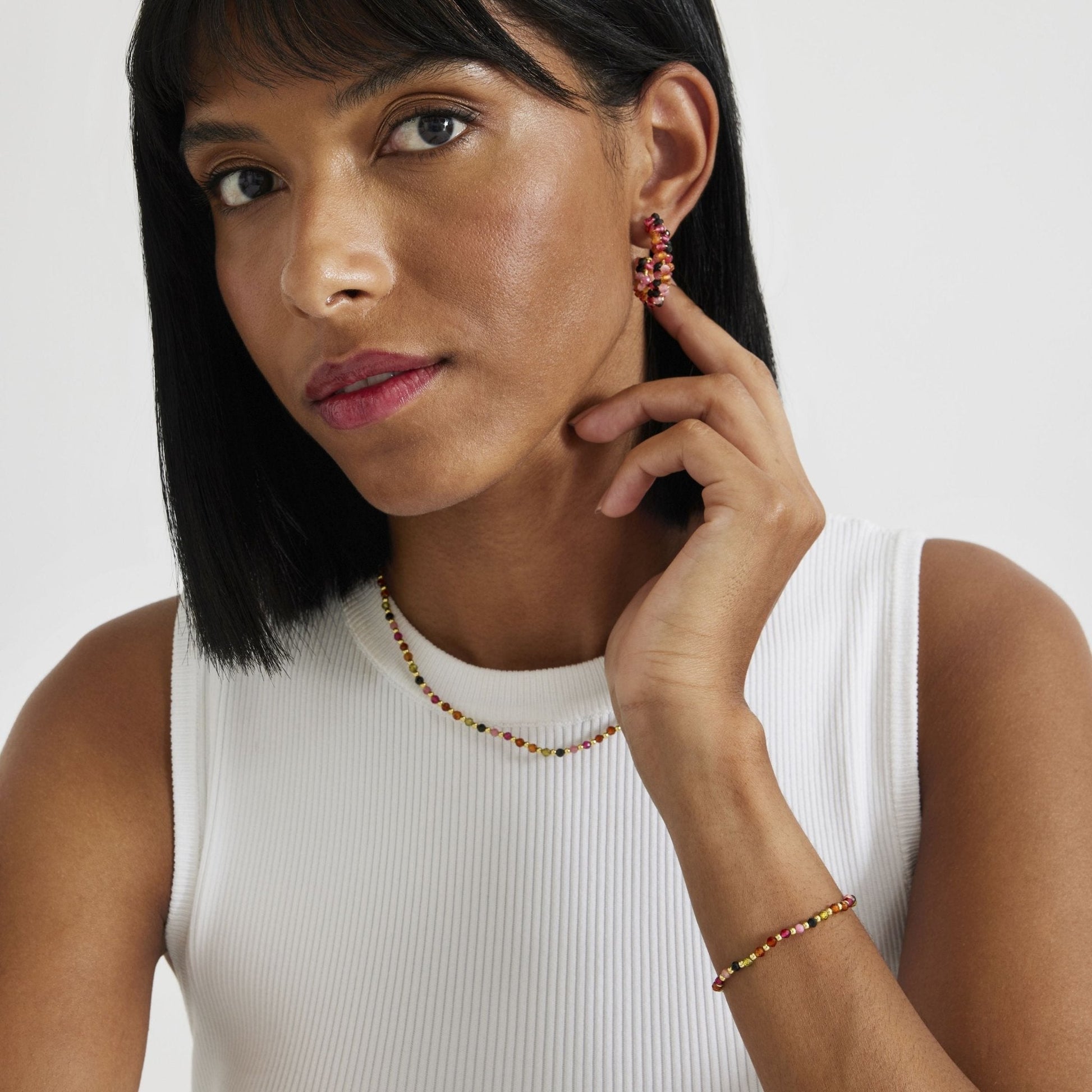 Pulsera Irfoa de Cristal Multicolor acabado oro 18k. África Moda te sumerge en un mundo de colores vibrantes, texturas exquisitas y diseños artesanales que reflejarán la esencia de tu espirítu.