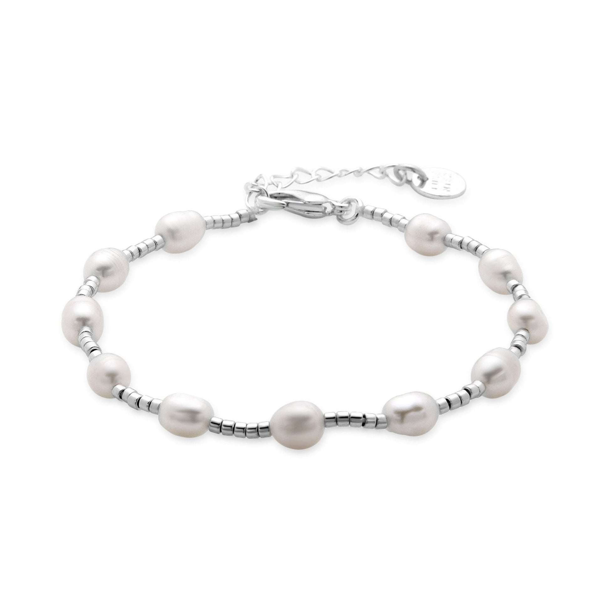 Pulsera Tartys de Perla Blanca acabado plata. África Moda te sumerge en un mundo de colores vibrantes, texturas exquisitas y diseños artesanales que reflejarán la esencia de tu espirítu.
