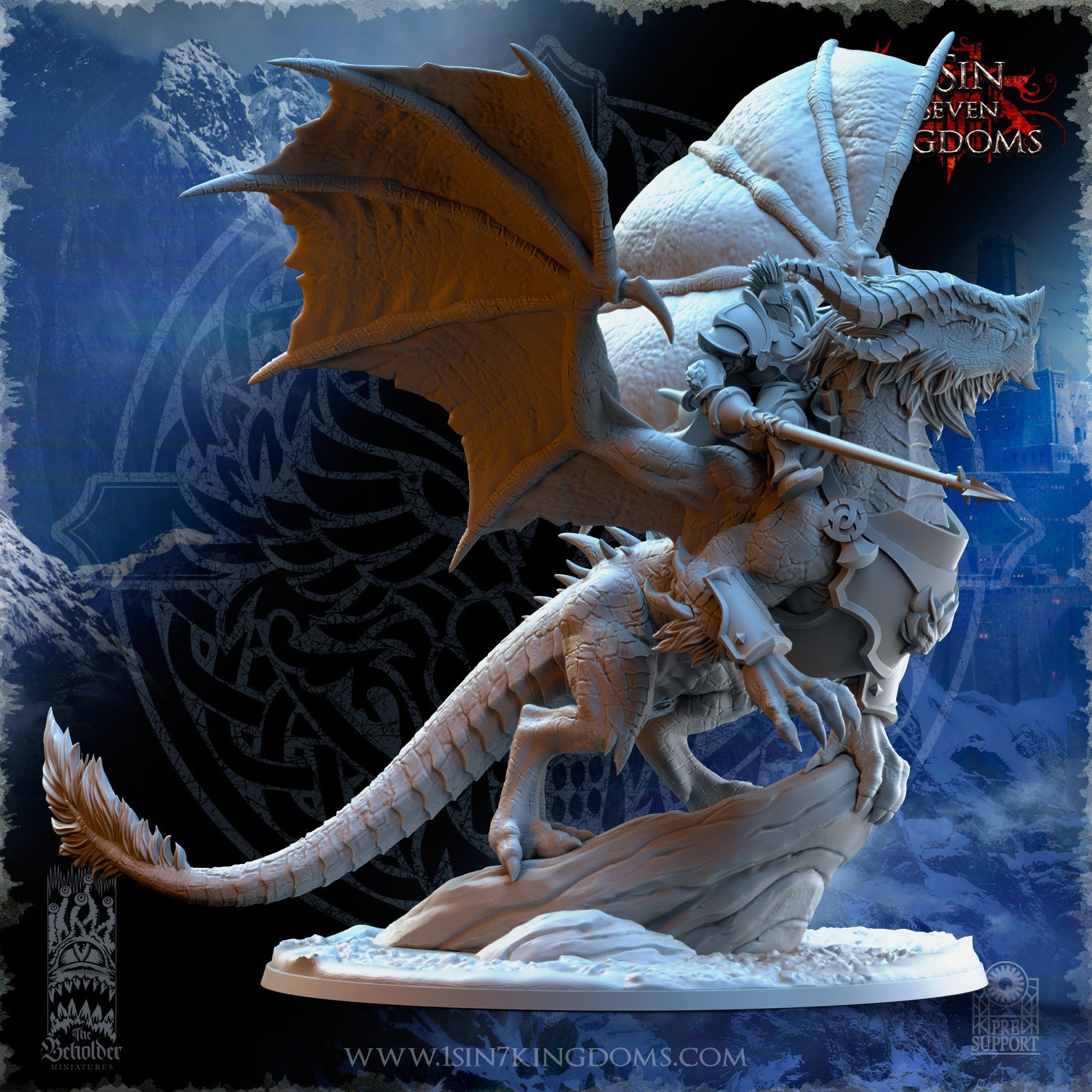 Trym Drakesong, Stormwolf Warlord on Dragon, The Beholder Miniatures